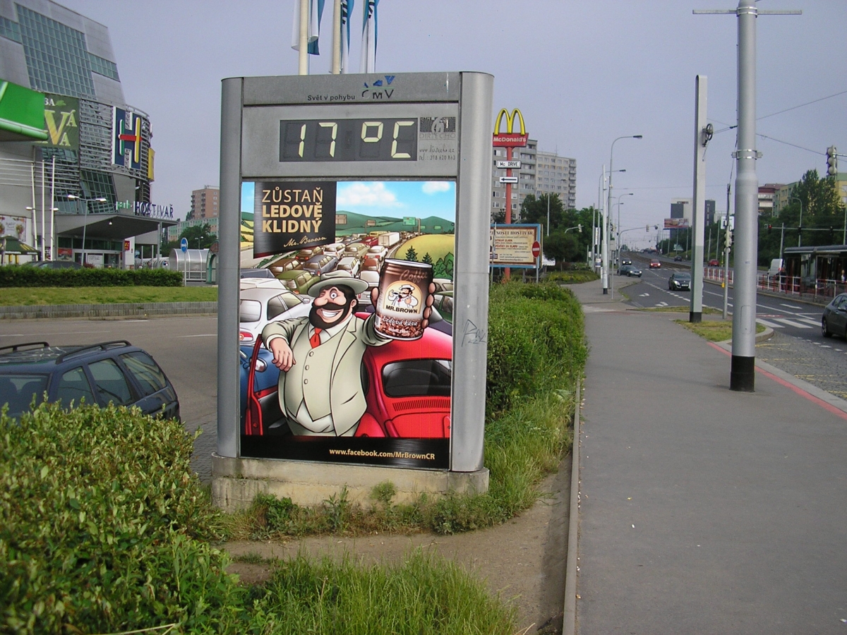 Ledová káva MR.BROWN i v letošním roce obsadila síť OOH teploměrů. V měsíci červen je k vidění na celé síti. Vizuál "Zůstaň ledově klidný" je zaměřen na cílovou skupinu motorista - účastník silničního provozu. Naše společnost tiskla na své tiskárně všechny plochy.